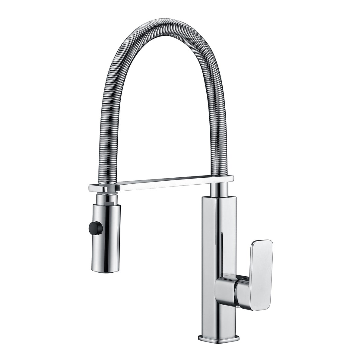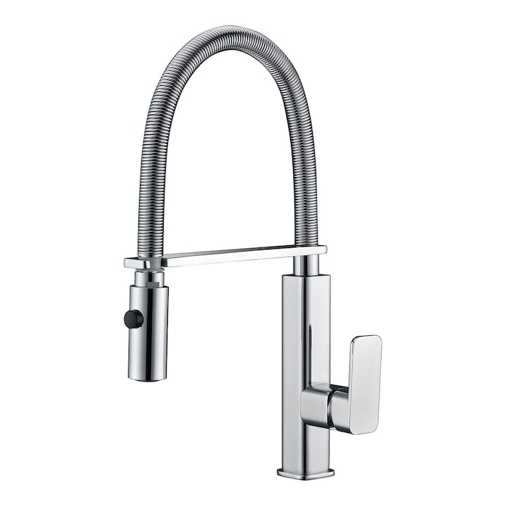 Grifo de cocina monomando con caño extraíble y flexible de 50 cm para que puedas dirigirlo como necesites. Solo tienes que sacar el caño del soporte para poder orientar la salida del agua.