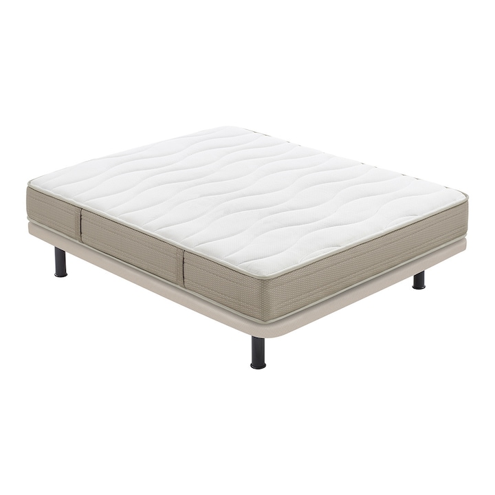 La tapicería interior es de fibras hipoalergénicas, y la exterior de 3D beige, lo que favorece la aireación del colchón evitando la acumulación de humedades.