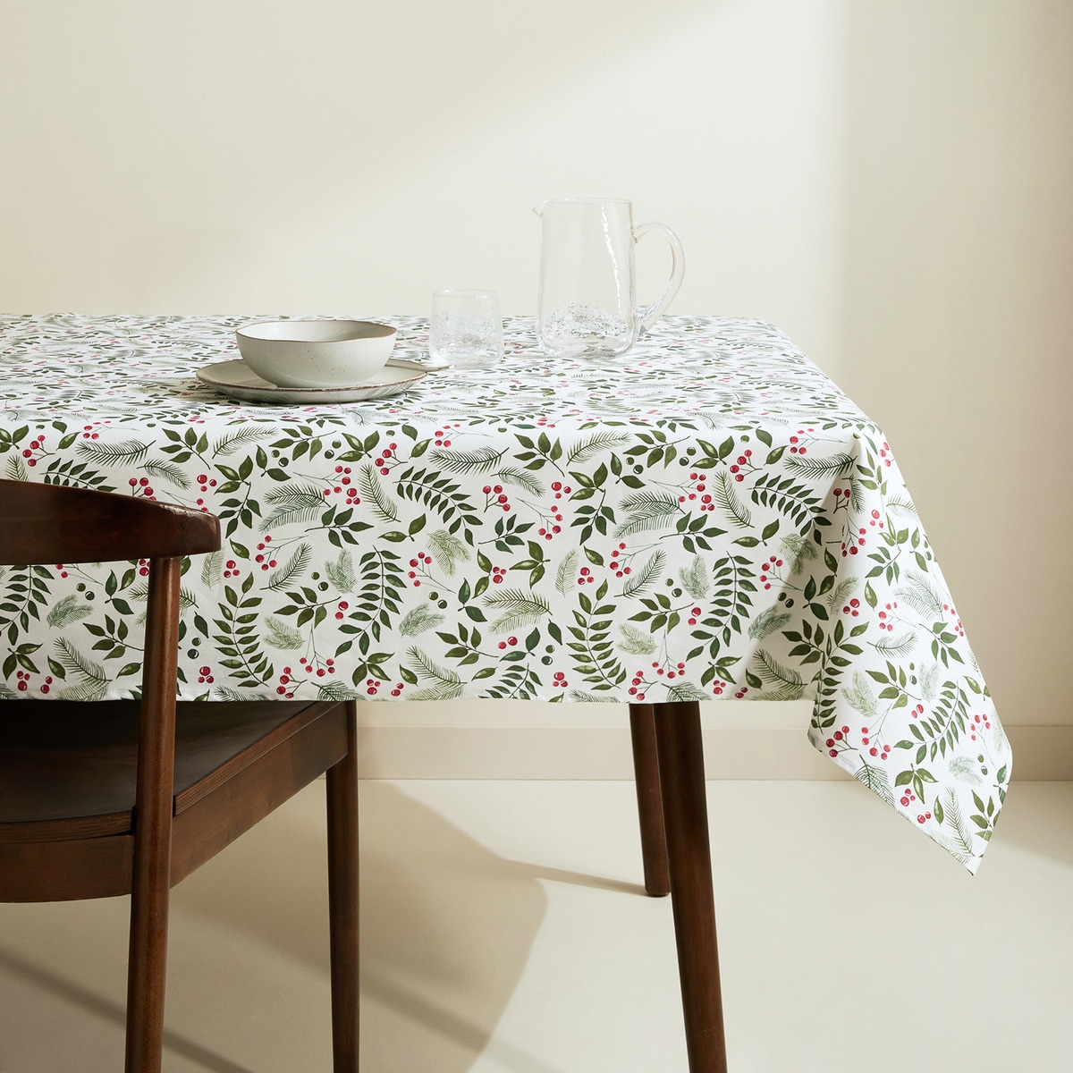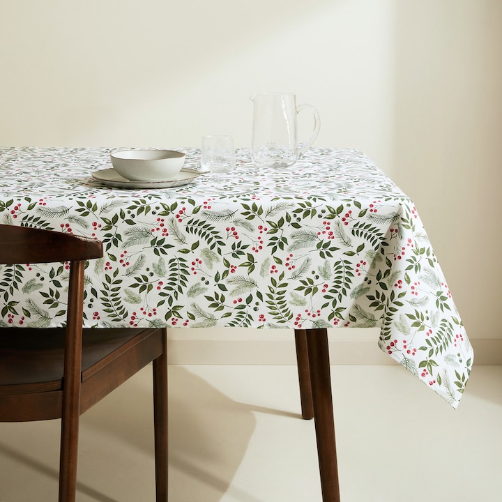Mantel resinado con motvios navideños de hojas verdes.