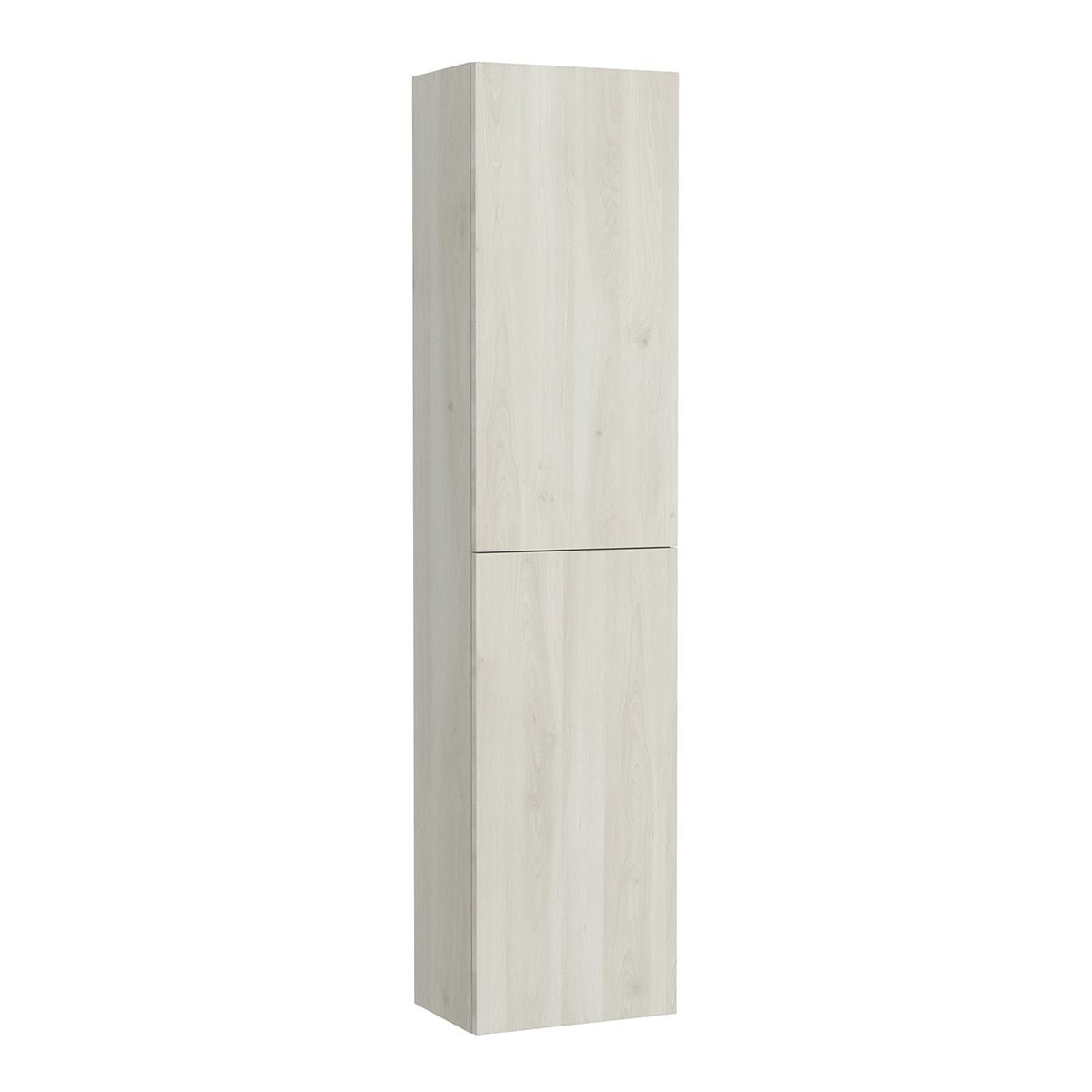 Columna de baño auxiliar en melamina con 2 puertas abatibles con cierre amortiguado y reversibles: pueden colocarse para apertura a derecha o a izquierda. Incorpora dos estantes interiores de madera regulables en altura.