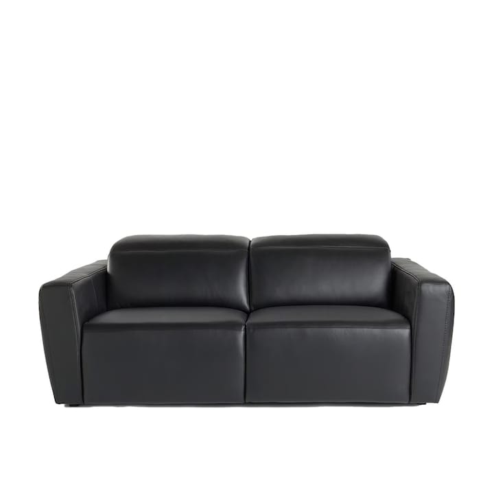 Sofá de piel de 3 plazas, contemporáneo y muy confortable gracias, entre otras cosas, a la amplitud de sus asientos y a la división cervical de los respaldos.