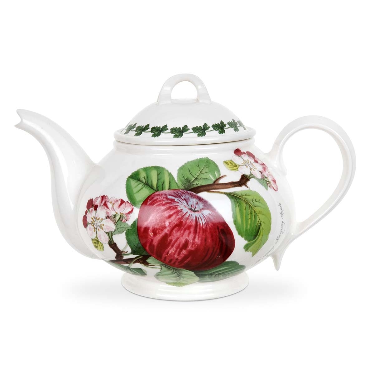 Tetera con tapa con una capacidad de 1,10 l realizada en loza con un diseño de líneas clásicas y atemporales, que la convierten en una pieza perfecta para utilizar en cualquier ocasión. Pertenece a la colección Pomona de la firma inglesa Portmeirion, creada en 1960, que recibe su nombre de la diosa romana de la fruta y que destaca por el dibujo de abundantes y llamativos motivos frutales sobre fondo blanco.