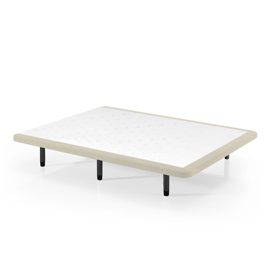 Base tapizada con estructura interior de acero, que hace de esta base una pieza muy resistente y duradera. Su superficie homogénea y firme alarga la vida últil del colchón Ecus porque permite un funcionamiento óptimo ayudando a repartir los pesos de los usuarios de manera uniforme.