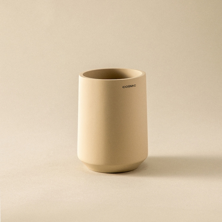 Portacepillos de encimera de la serie Saona de Cosmic, de líneas elegantes y geométricas. Está disponible en varios colores para que elijas el que más se adapte al estilo de tu cuarto de baño.