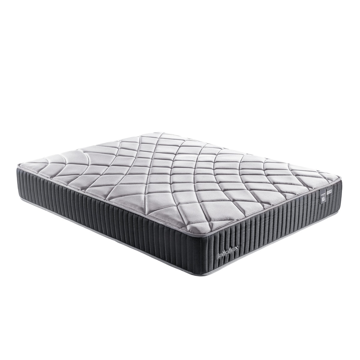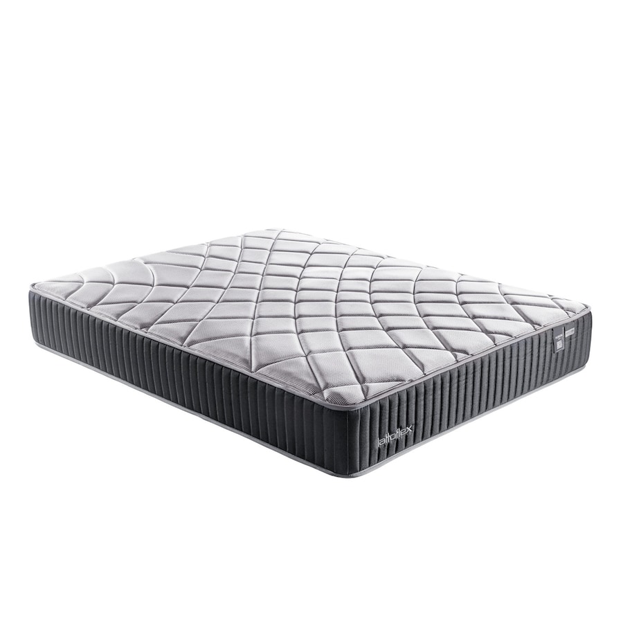 Colchón híbrido de muelles ensacados combinados con espuma técnica HR de firmeza alta y media que proporciona el soporte adecuado para la columna. Reduce la presión gracias a su confort progresivo.