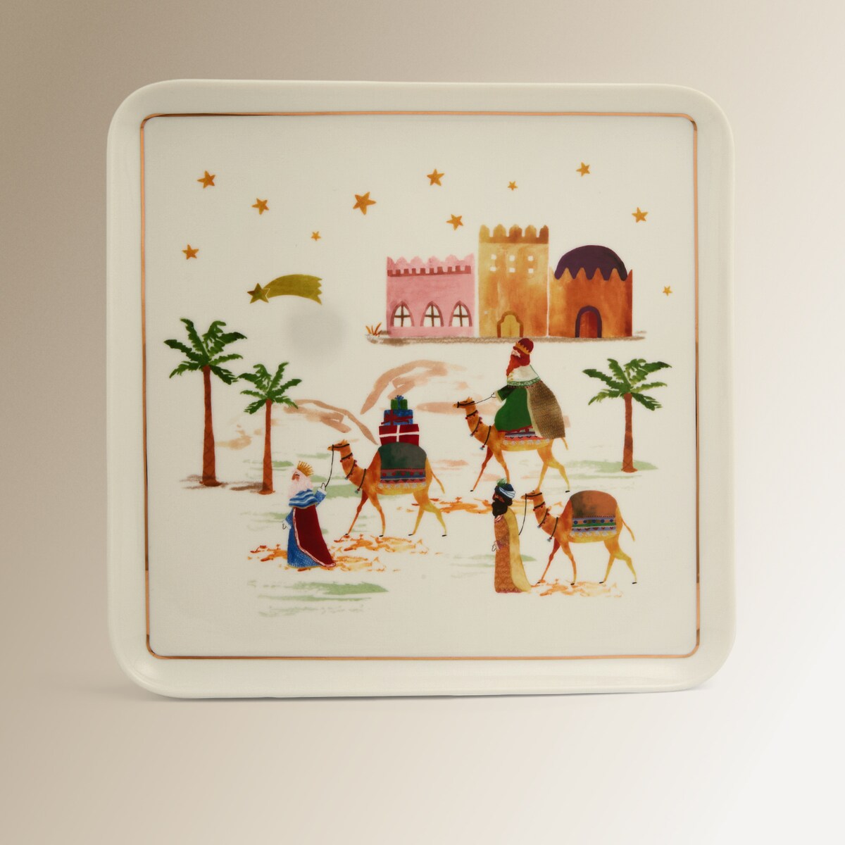 Fuente perfecta para servir tus platos y vestir la mesa con una decoración navideña. Está fabricada con New Bone China, un material que se caracteriza por su durabilidad y resistencia, y tiene un dibujo de los Reyes Magos.
