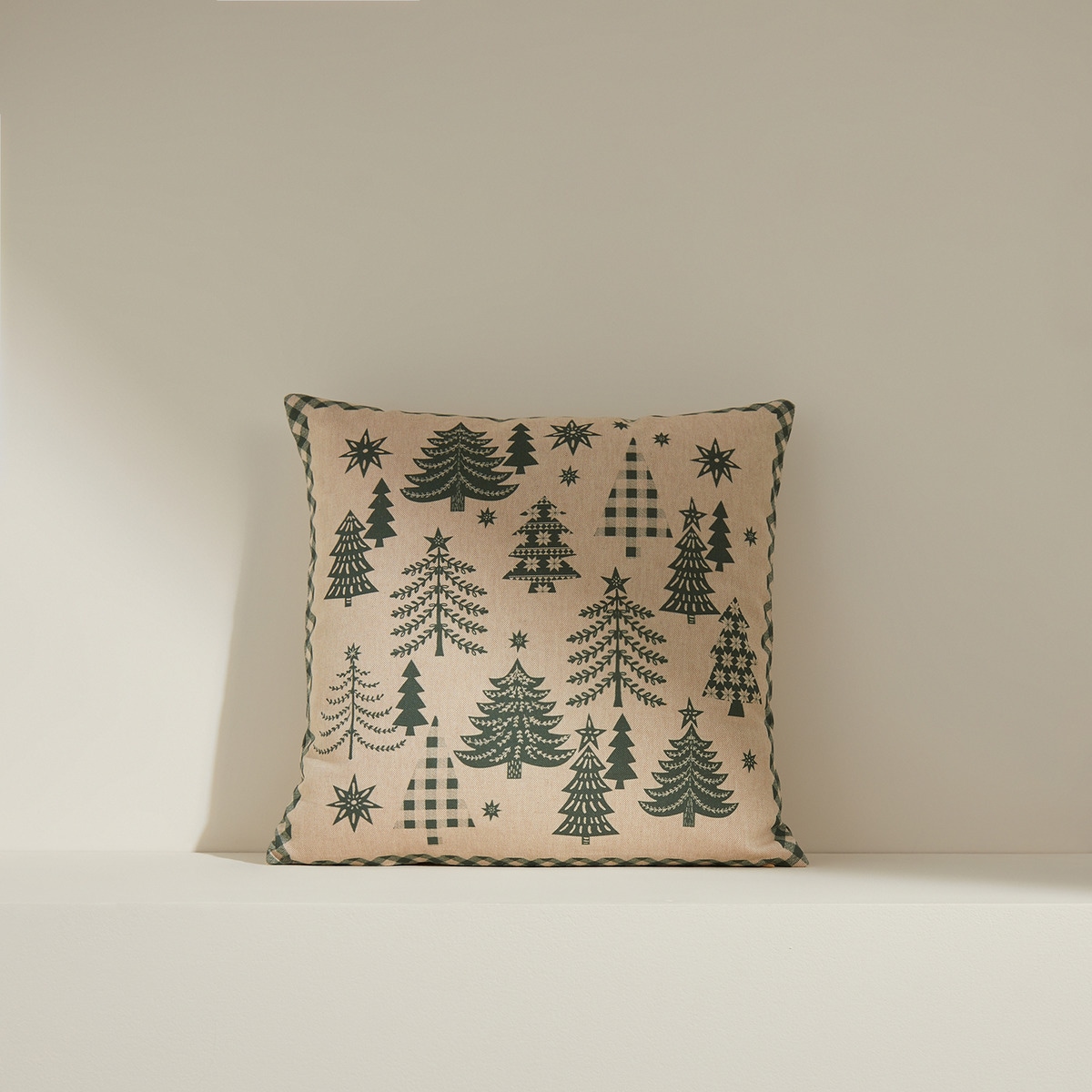 Funda de cojín con diseño de pinos de diferentes estilos.