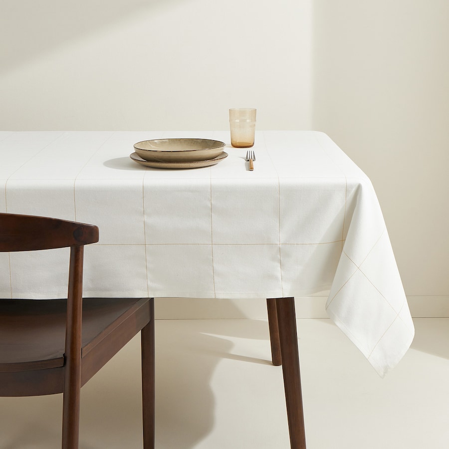 A juego con el textil mesa del modelo Gold Check de El Corte Inglés.