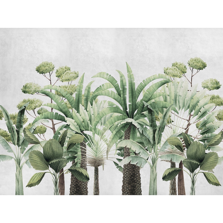 Mural autoadhesivo con diseño de diferentes palmeras.