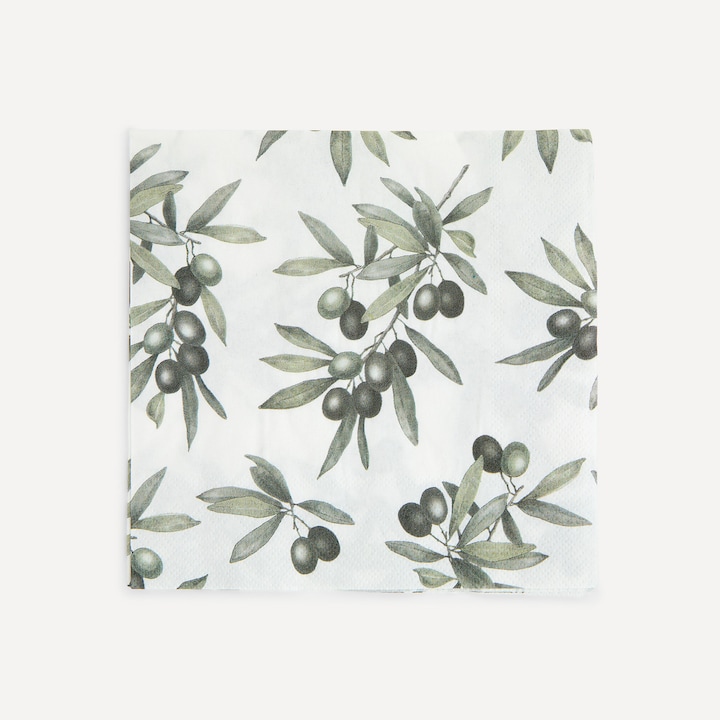 Pack de 20 servilletas de papel con estampado de ramas de olivo.