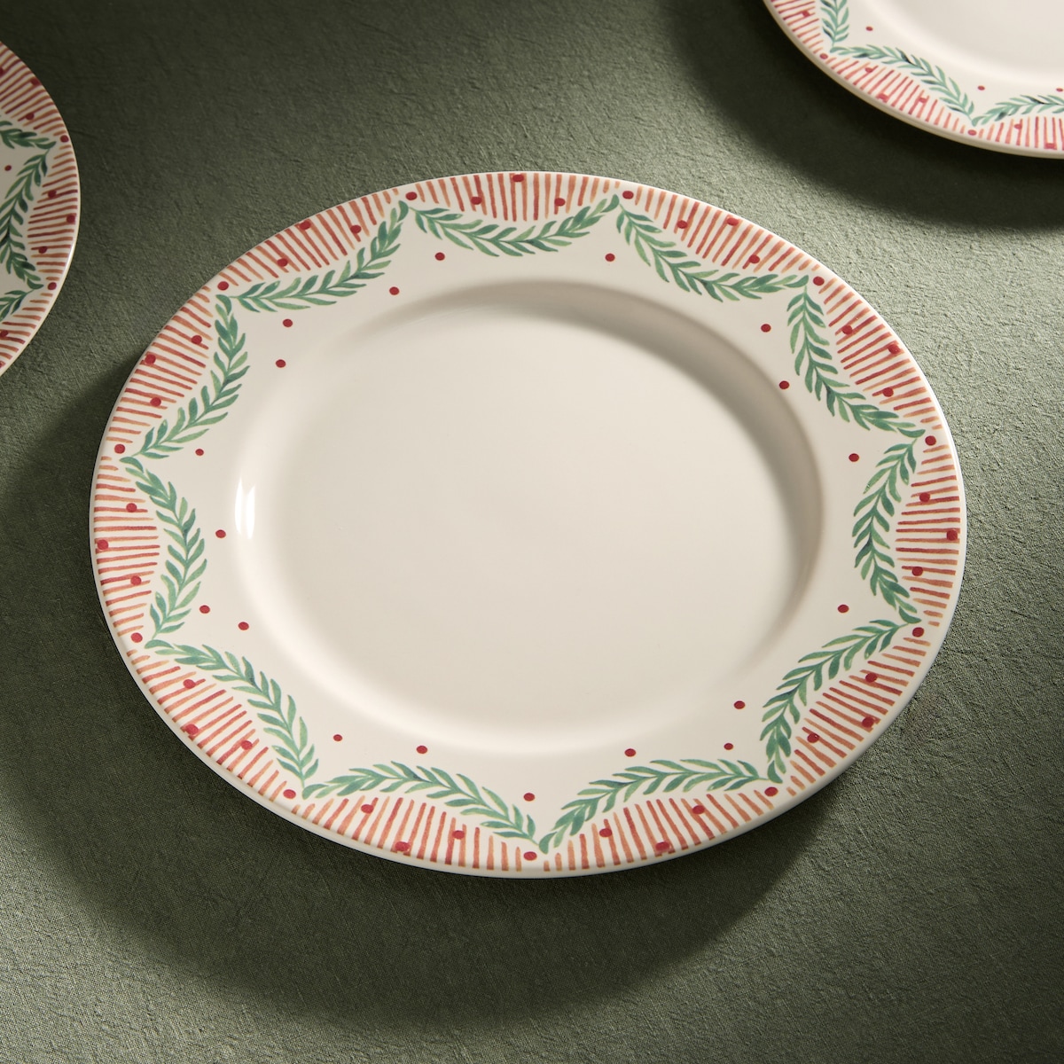 Plato llano decorado con un motivo navideño, perfecto para las ocasiones especiales.
