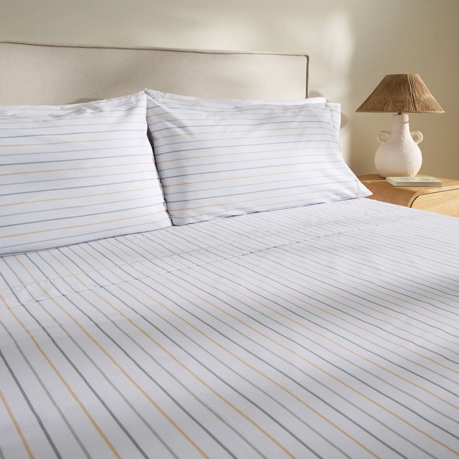 Incluye 1 sábana bajera ajustable, 1 sábana encimera y 1 funda de almohada (2 fundas de almohada para las medidas de 150 y 180 cm).