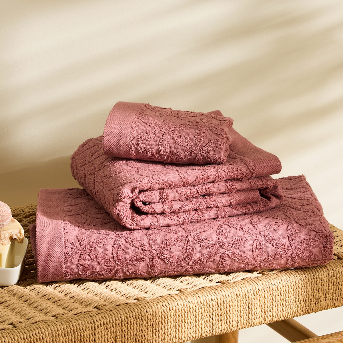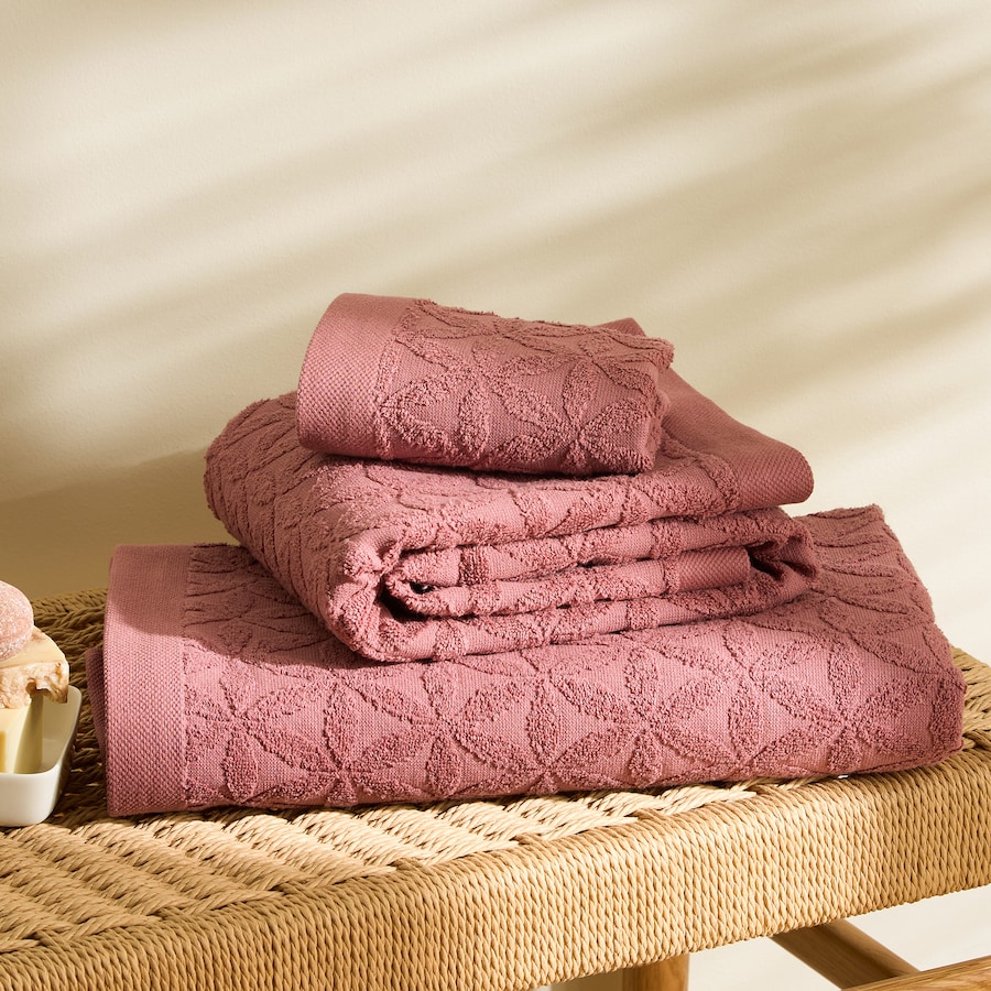 Toalla de baño con diseño geométrico en jacquard y acabado velour.