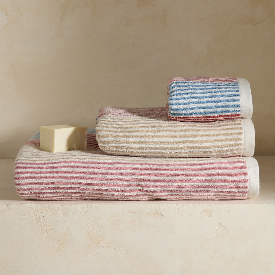 Toalla de baño con diseño de rayas multicolor en hilo tintado.