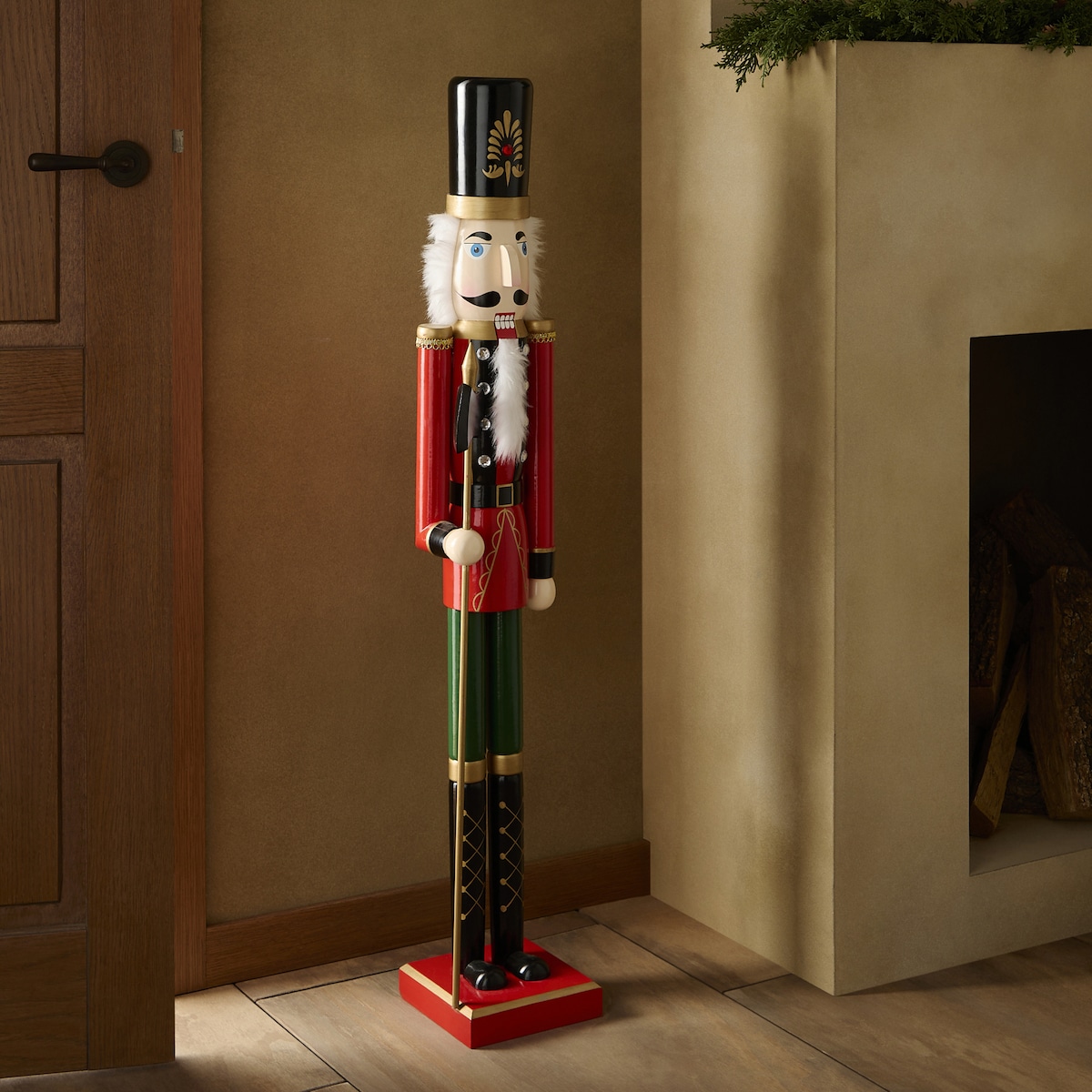 La tradicional figura del soldado cascanueces es una de las más elegante que podemos encontrar para la decoración de Navidad. Ésta está realizada en madera y lleva un bonito traje de color rojo.