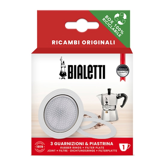 Repuesto de 3 juntas + 1 filtro para cafeteras Moka Express Bialetti