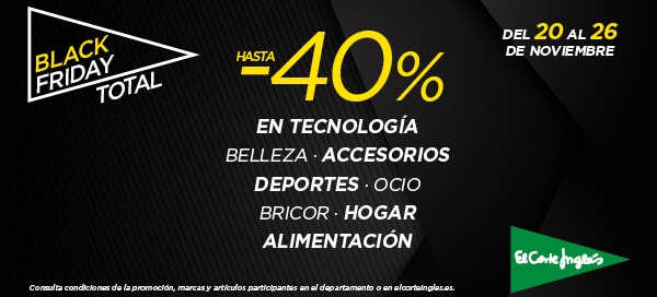 El Corte Inglés arranca hoy su campaña de Black Friday con descuentos especiales en moda, lencería y zapatería para clientes que compren en tienda con Tarjeta El Corte Inglés o que se identifiquen en la misma con la app. También, estará disponible para clientes que compren a través de la web o app. Disfrutarán de hasta un 40% de descuento y recibirán también un 15% de regalo para próximas compras desde el 29 de noviembre hasta el 1 de diciembre.
