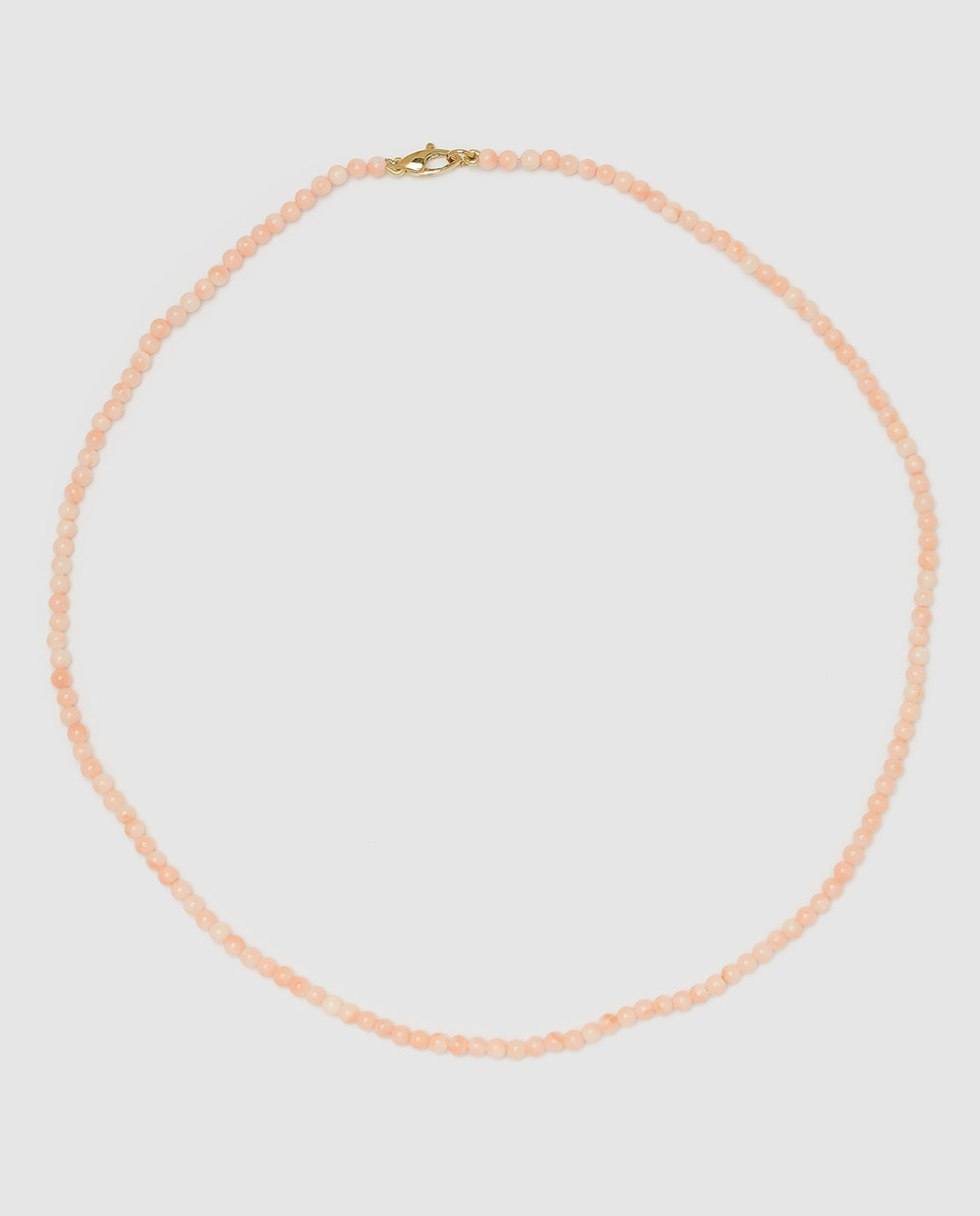 Collar enfilado con bolas coral rosa de 3,5-4 mm con cierre de oro amarillo de 18 kts.