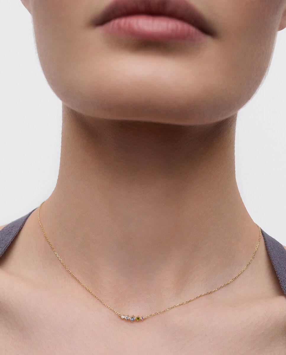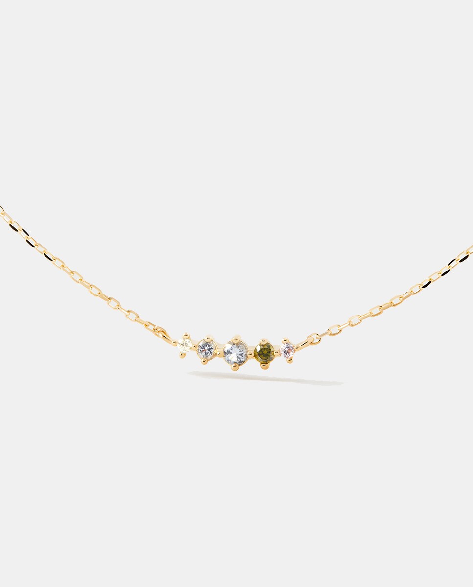 Collante elegante adornado con cinco circonitas de colores en plata de Ley 925 milésimas acabada con baño de oro de 18K.