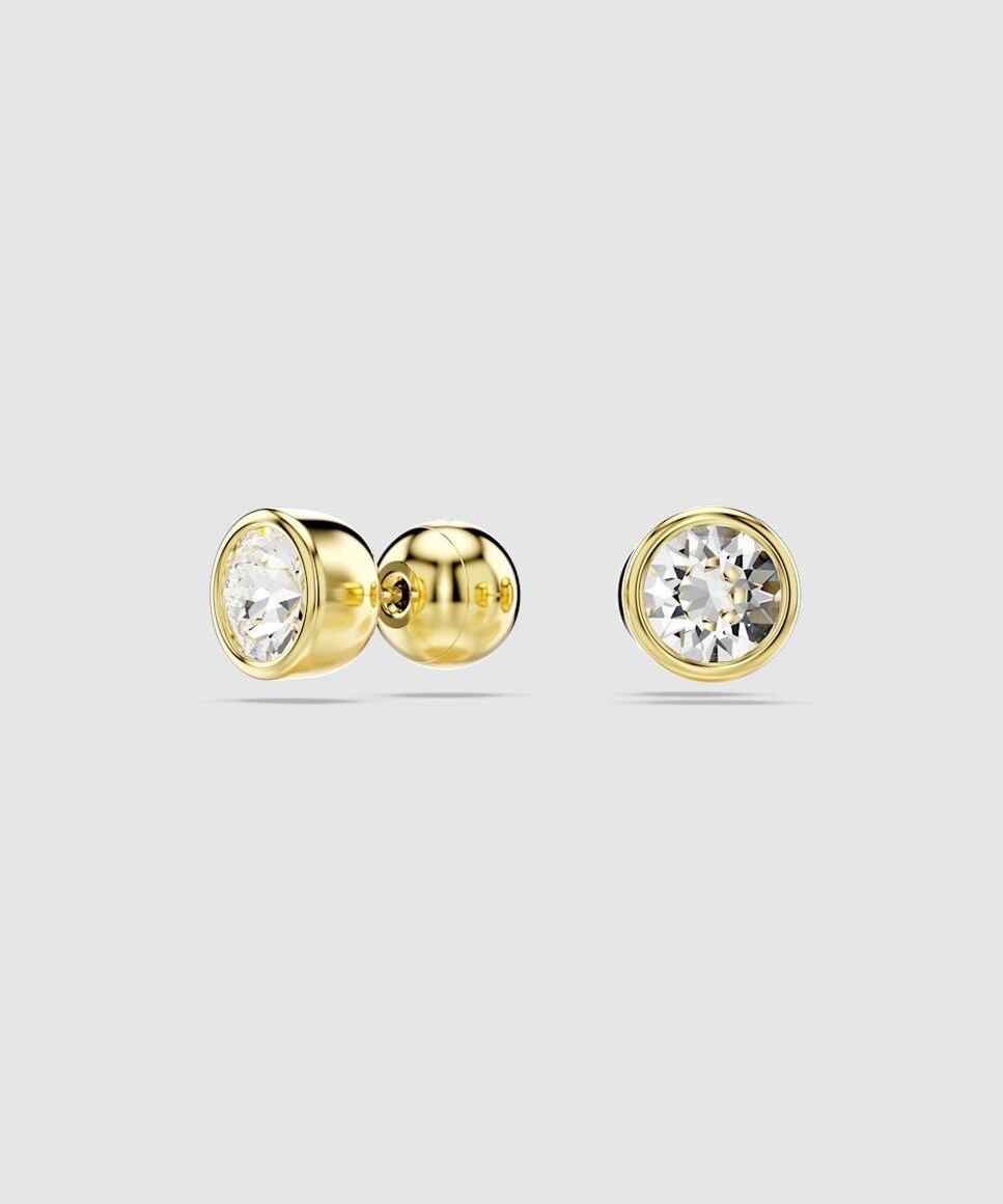Estos sencillos pendientes de botón son una hermosa muestra del experto facetado de Swarovski. Cada pieza bañada en tono oro incluye un cristal de talla redonda en un engaste de bisel abombado. Una opción ideal para llevar a diario y que puedes combinar fácilmente con una pulsera o un collar de la familia Imber.