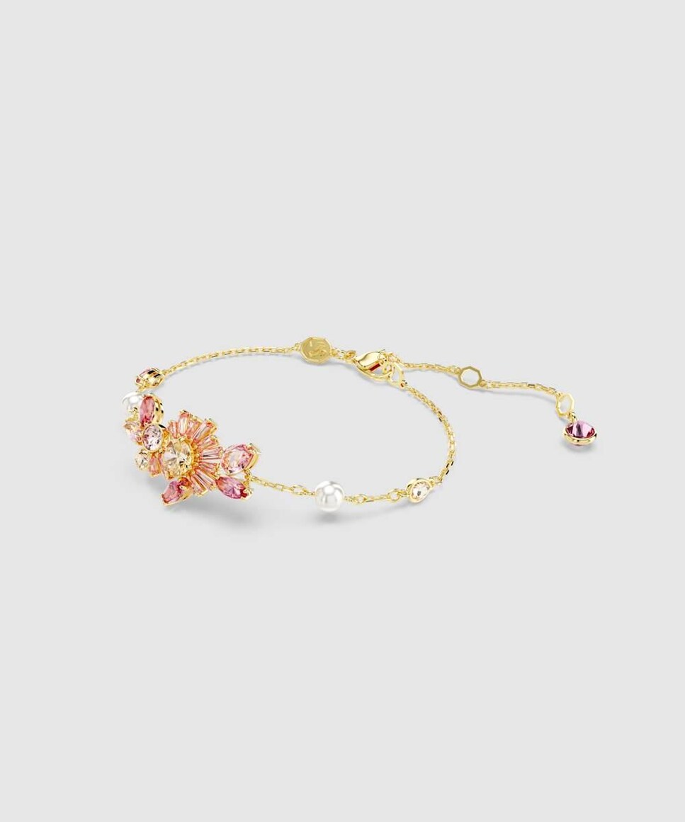 Esta pulsera, que refleja los exquisitos pétalos de la flor del cerezo de Japón, es fresca y cautivadora. Este accesorio bañado en tono oro incorpora una delicada cadena adornada con Crystal Pearls y cristales dispersos, y se abrocha con un cierre de mosquetón. En el centro, incorpora una mezcla variada de cristales de talla fancy y Swarovski Zirconia en vibrantes tonos rosa y champán. Luce esta pulsera sola para abrazar la maravilla de la naturaleza o combínala con una pieza a juego de nuestra familia de accesorios Gema Sakura.