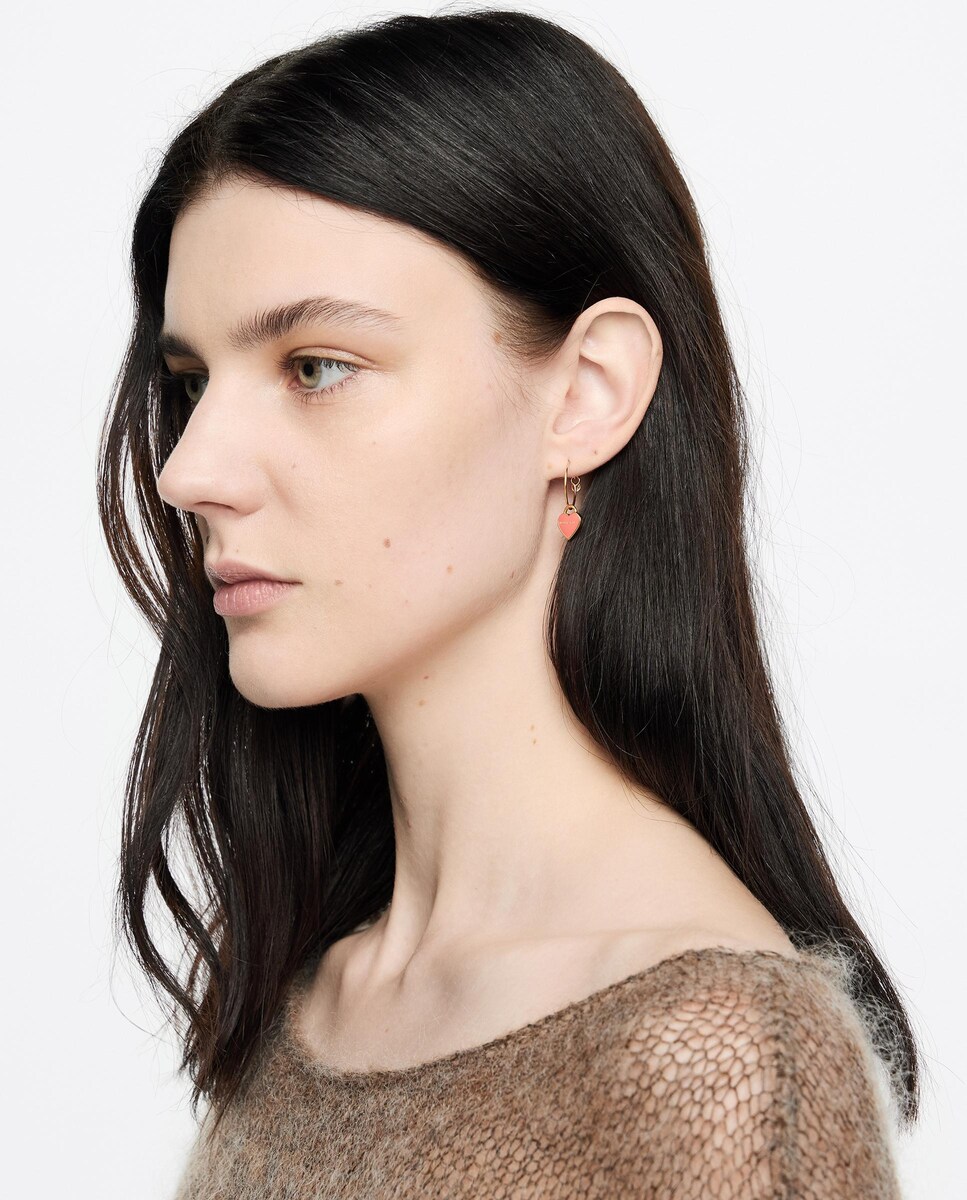 Pendientes de aro mini en forma de corazón dorado y rojo.