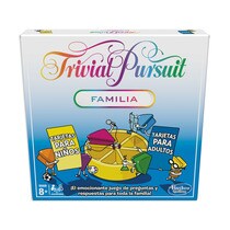 Juego Trivial Pursuit para jugar en familia, ¡a partir de 8 años! Este juego de trivia familiar con ritmo rápido incluye 400 tarjetas con 2400 preguntas en 2 barajas separadas: una para niños y otra para adultos. El juego Trivial Pursuit edición familiar incluye nuevas preguntas de trivia y un juego rápido, incluido el desafío Duelo, en el que 2 jugadores compiten por un triángulo al mismo tiempo. Juega individualmente o por equipos turnándose para desplazarse por el tablero y respondiendo correctamente las preguntas para ganar los triángulos. Los miembros de la familia pueden poner a prueba su inteligencia con una pregunta tras otra en 6 categorías: Geografía, Entretenimiento, Historia, Deportes y ocio, Arte y literatura, y Ciencia y naturaleza. Sé el primer jugador o equipo en ganar cada uno de los 6 triángulos de categoría, y responde correctamente una pregunta final para ganar. Trivial Pursuit, el logotipo asociado, el diseño distintivo del tablero de juego, las tarjetas de trivia, las fichas de juego y los triángulos de puntuación son marcas registradas de Hasbro. Hasbro Gaming y todos los términos relacionados son marcas registradas de Hasbro.