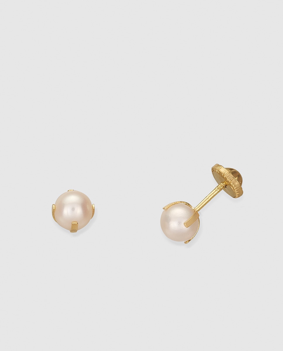 Pendientes de bebé en oro 750 milésimas (18 quilates) y perla blanca.