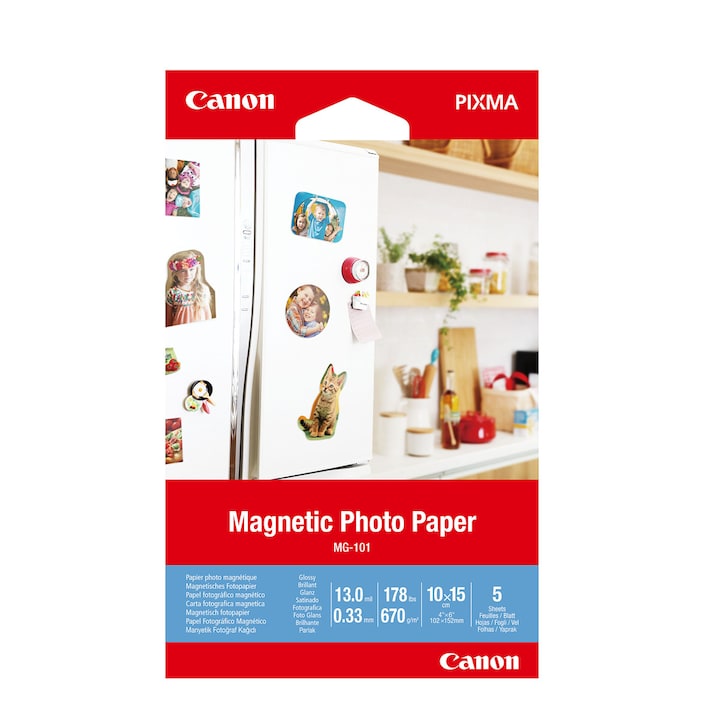 Papel fotográfico magnético Canon MG 101, 10x15cm, 670 g/m2, 5 hojas