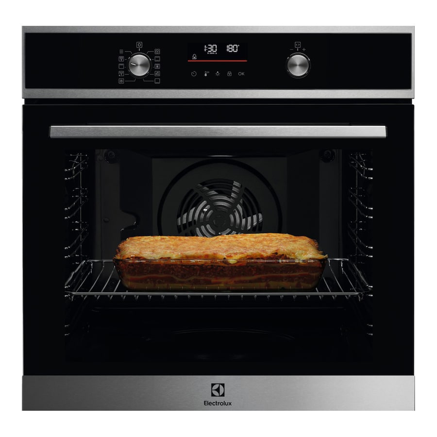 Horno multifunción de la marca Electrolux, diseñado como horno independiente. Ofrece diversas funciones de cocción, incluyendo calor inferior, cocción convencional, descongelar, gratinar y función especial para pizza. Incorpora un sistema de autolimpieza pirolítica. El panel de mandos cuenta con mandos escamoteables y funciones electrónicas como cronómetro, inicio diferido, regulación electrónica de la temperatura e indicador de temperatura real. Dispone de una sonda térmica para un control preciso de la cocción y un sistema de seguridad para niños. Incluye accesorios como bandeja pastelera, grasera y parrilla. La iluminación es halógena y el nivel sonoro máximo es de 45 dB.