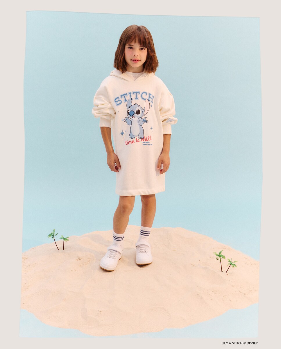 Camiseta manga corta estampado print posicional Stitch&Lilo de niña