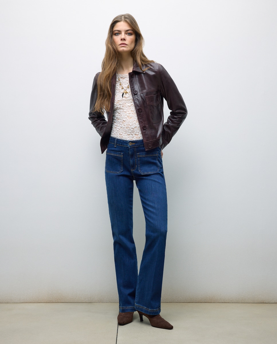 Vaquero de mujer 5 bolsillos con pespuntes a contraste
