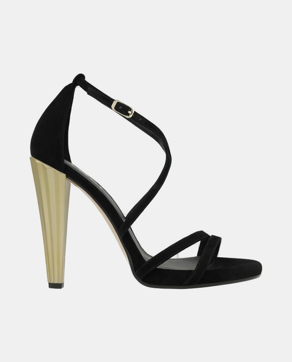 Sandalia de ante negro con lazo y tacón metalizado LODI
