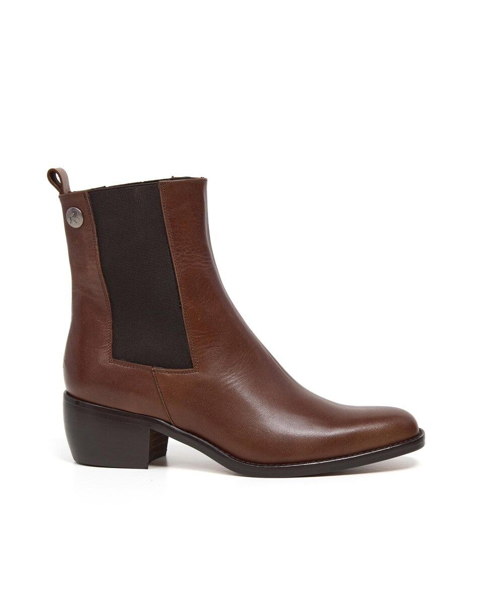 Zueco de mujer de ante fijado a la suela con apliques metálicos