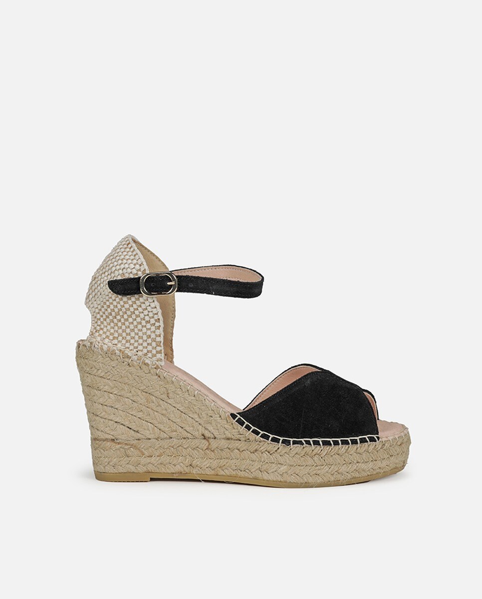 Alpargata de cuña de mujer con plataforma en serraje color negro