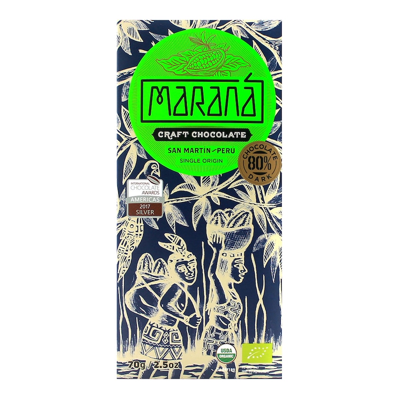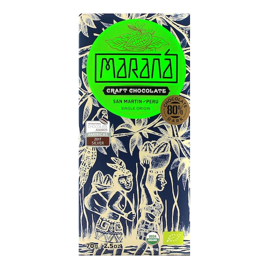 Tableta de chocolate negro artesanal San Martín/Perú 80% cacao Maraná