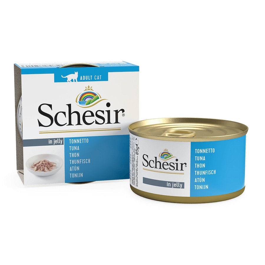 Comida húmeda para gatos adultos Schesir atún en gelatina 85 g