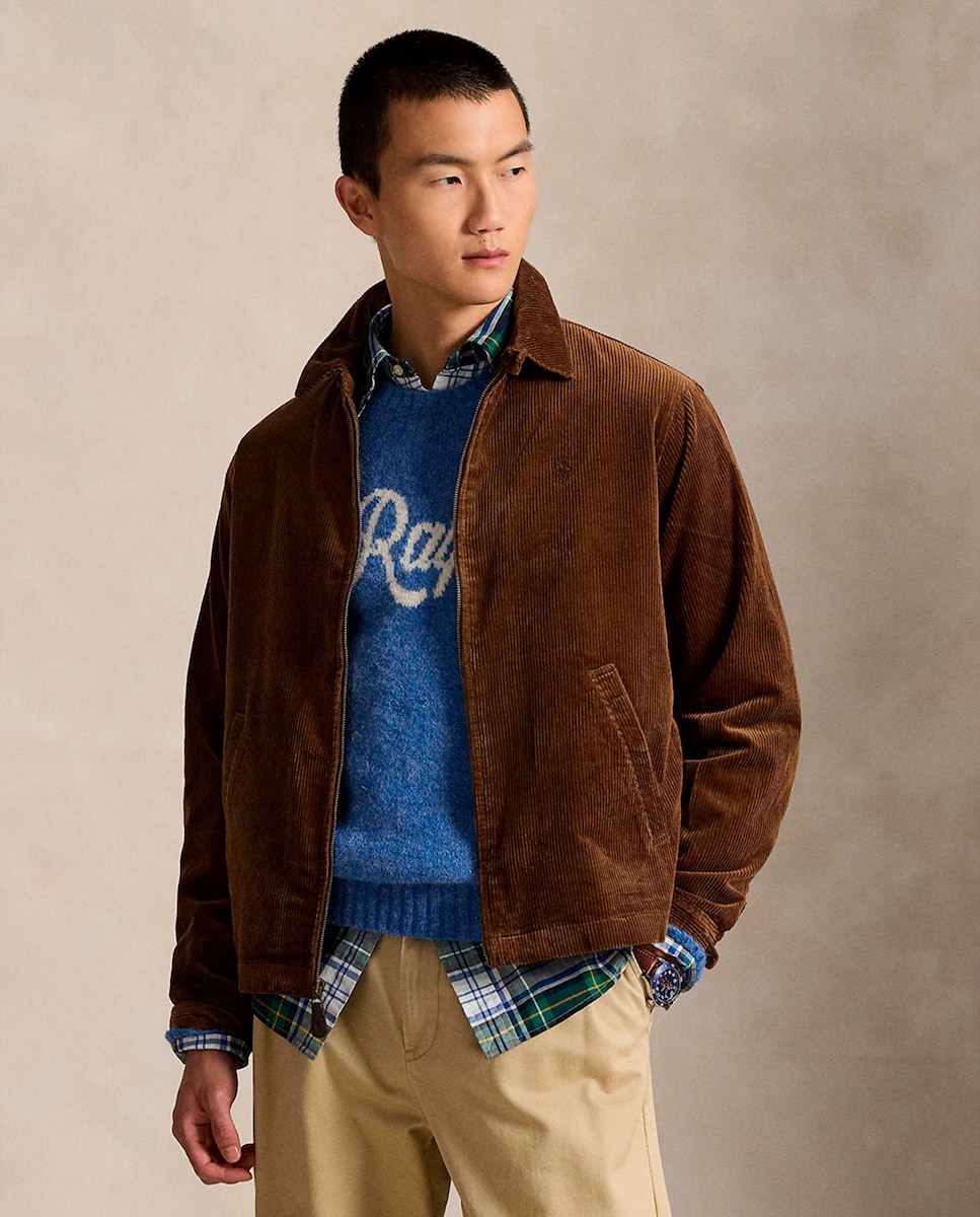 Cazadora de caballero encerada con cuello de pana