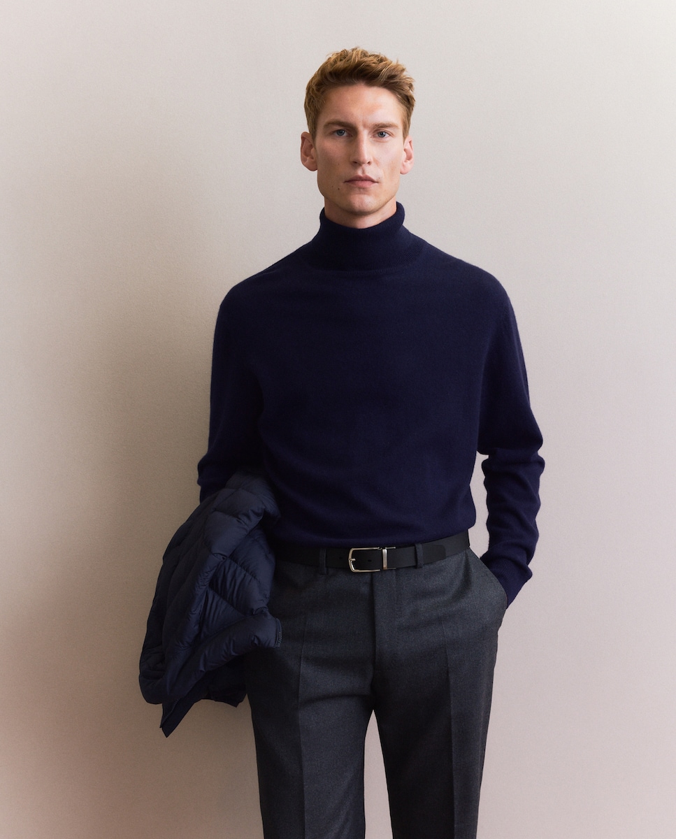 Jersey de hombre de cuello cisne liso cashmere