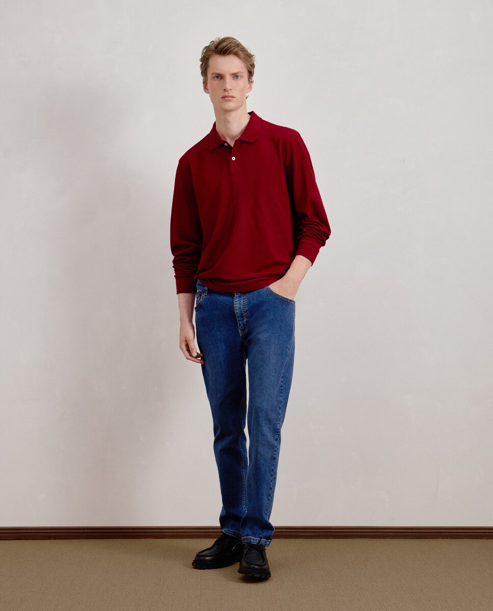 Polo de hombre de manga larga liso