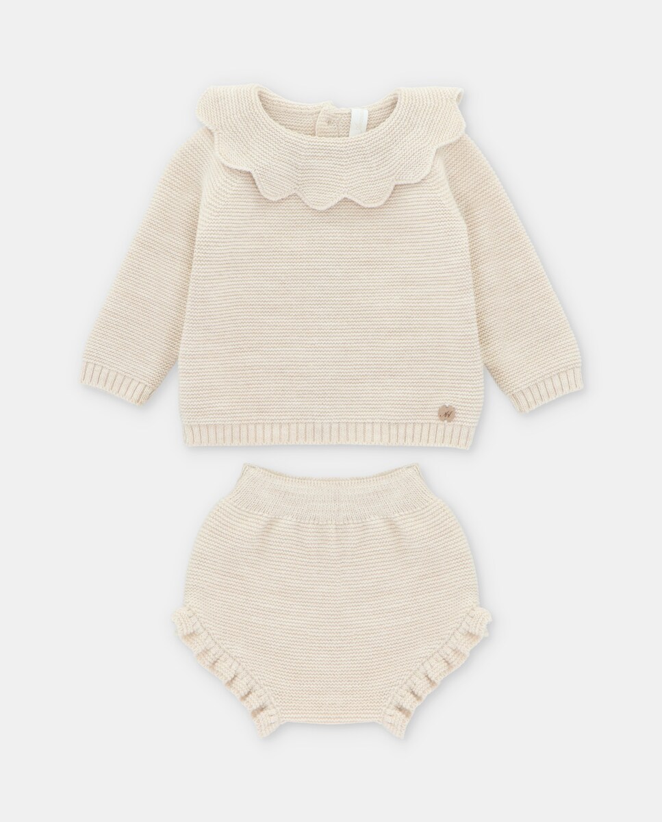 Conjunto de bebé en punto de algodón con jersey y polaina