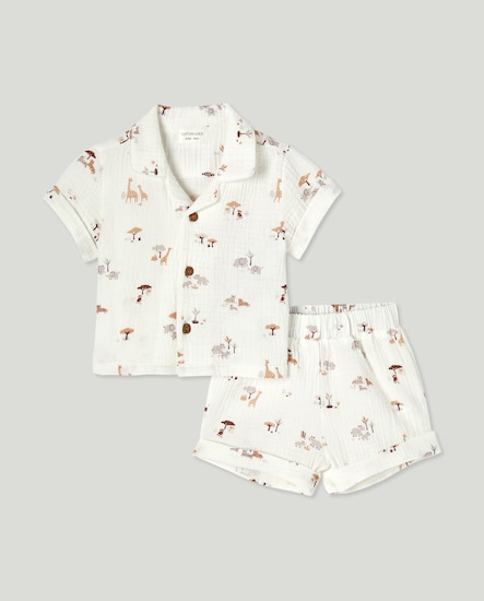 Pijama corto abotonado de bebé en gasa