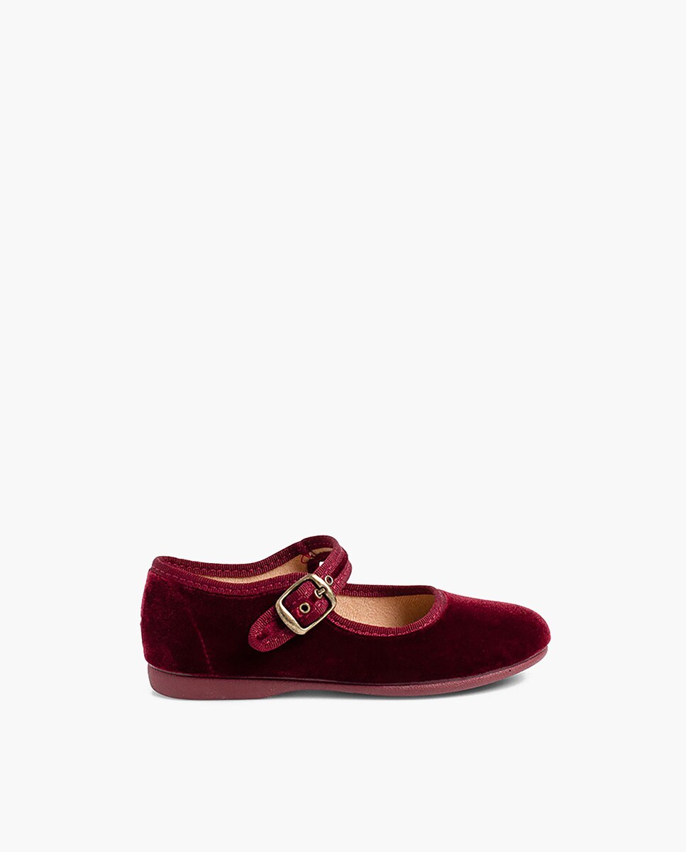 Merceditas de bebé niña en terciopelo con cierre de hebilla