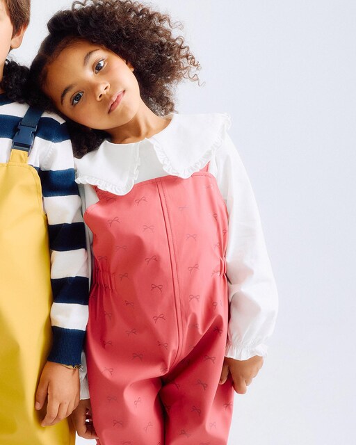 Blusa camiseta manga larga circular cuello con volante all over print flores de niña