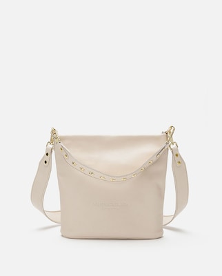 Bolso bandolera tamaño mediano en rafia. Incluye correa en piel.