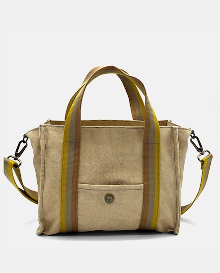 Bolso de mano mediano de tejido CANVAS tipo tote convertible a bandolera