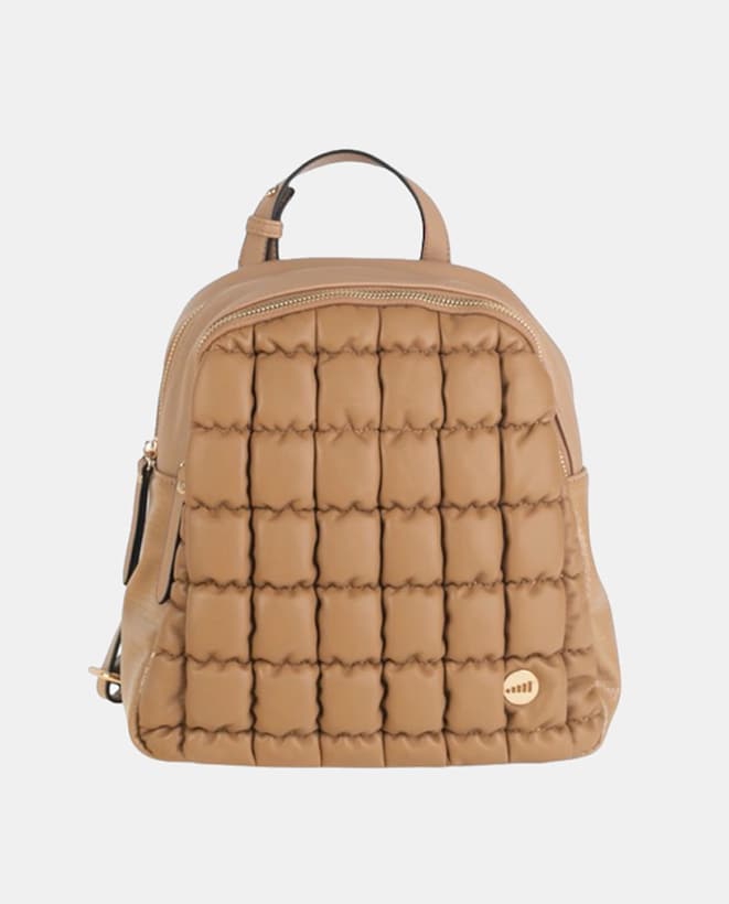 VolumMochila tamaño medio color camel cofeccionada combiando 3 materiales de diferentes acabados siempre al tono.AÑADIR