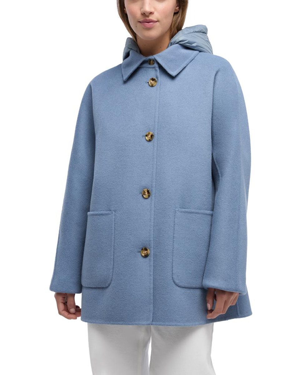 Abrigo de mujer con capucha fabricado con una mezcla de lana de doble cara