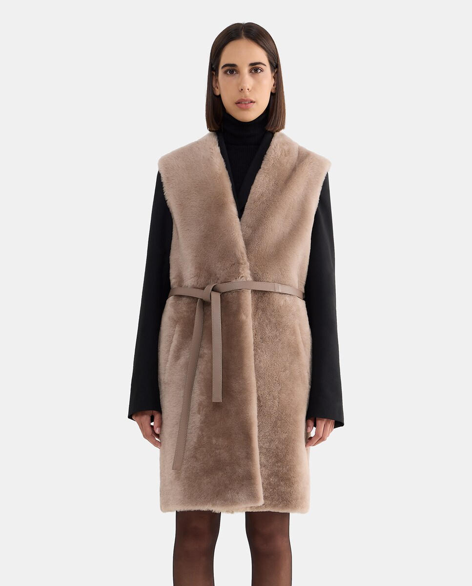 Abrigo reversible de mujer piel vuelta con cuello tira