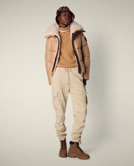 Plumifero largo de mujer con cinturon y pelo desmontable